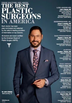 Dr. Luis Macias is a multi-awarded plastic surgeon based in Marina del Rey. He is board-certified by the American Board of Plastic Surgery. He has been listed among the best plastic surgeons by RealSelf and other organizations.